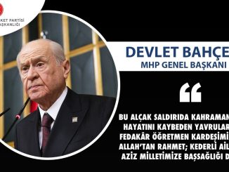 Genel Başkanımız Sayın Devlet BAHÇELİ: Bu alçak saldırıda Kahramanmaraş’ta hayatını kaybeden yavrularımıza ve fedakâr öğretmen kardeşimize Cenab-ı Allah’tan rahmet; kederli ailelerine ve aziz milletimize başsağlığı diliyorum
