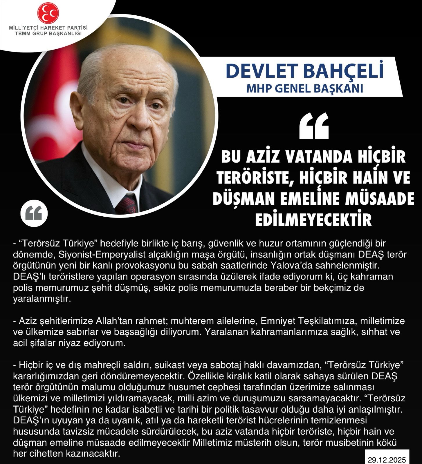 “Terörsüz Türkiye” hedefiyle birlikte iç barış, güvenlik ve huzur ortamının güçlendiği bir dönemde, Siyonist-Emperyalist alçaklığın maşa örgütü, insanlığın ortak düşmanı DEAŞ terör örgütünün yeni bir kanlı provokasyonu bu sabah saatlerinde Yalova’da sahnelenmiştir.