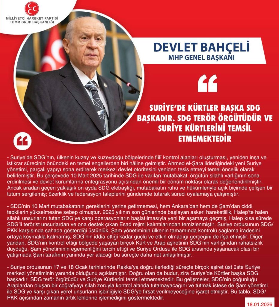 Genel Başkanımız Sayın Devlet BAHÇELİ’nin “Suriye Cumhurbaşkanı Şara’nın Yayımladığı Kararname ve Suriye’de Yaşanan Gelişmelere İlişkin” yapmış oldukları değerlendirmeler