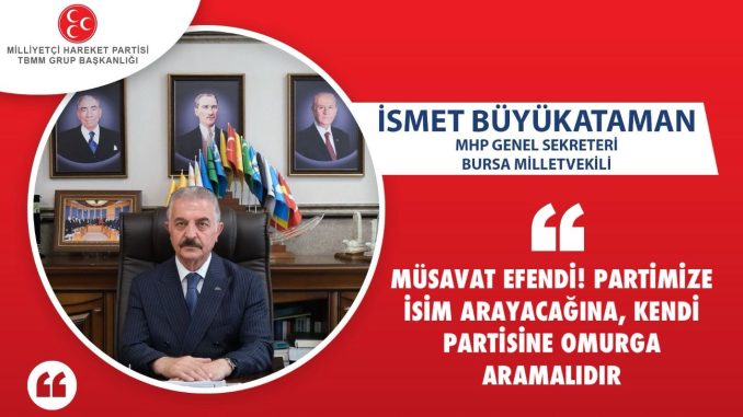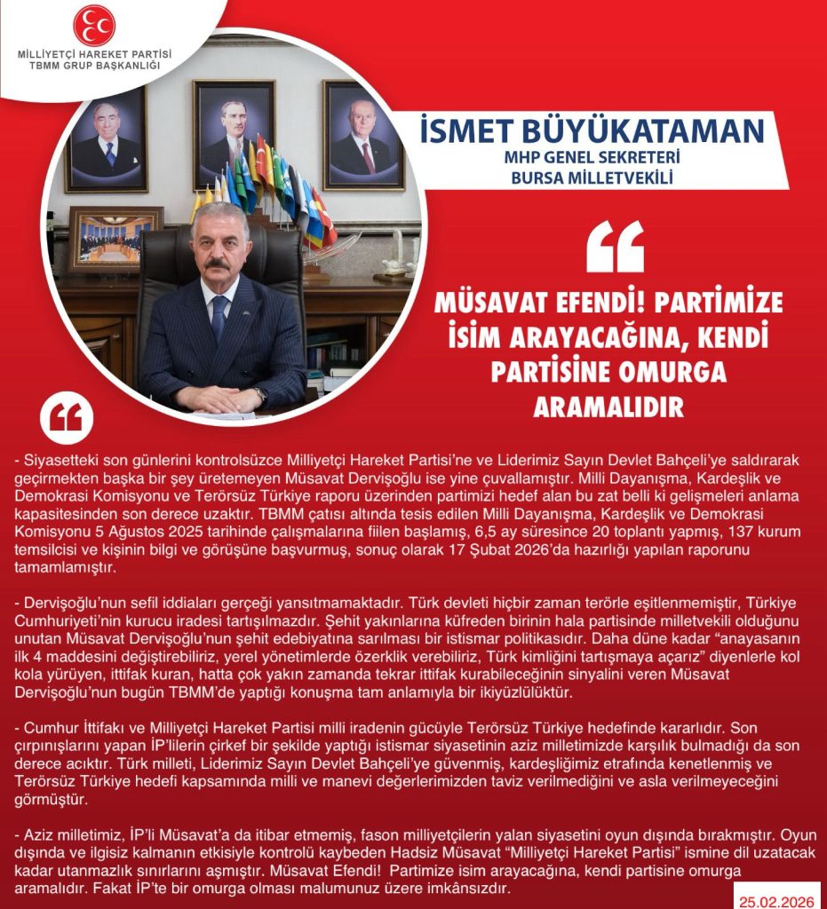 MHP Genel Sekreteri ve Bursa Milletvekilimiz İsmet BÜYÜKATAMAN’ın, “İp Genel Başkanı Müsavat Dervişoğlu’nun Partimizi ve Genel Başkanımız Sayın Devlet BAHÇELİ’yi Hedef Alan Açıklamalarına Cevaben” yaptığı yazılı basın açıklaması