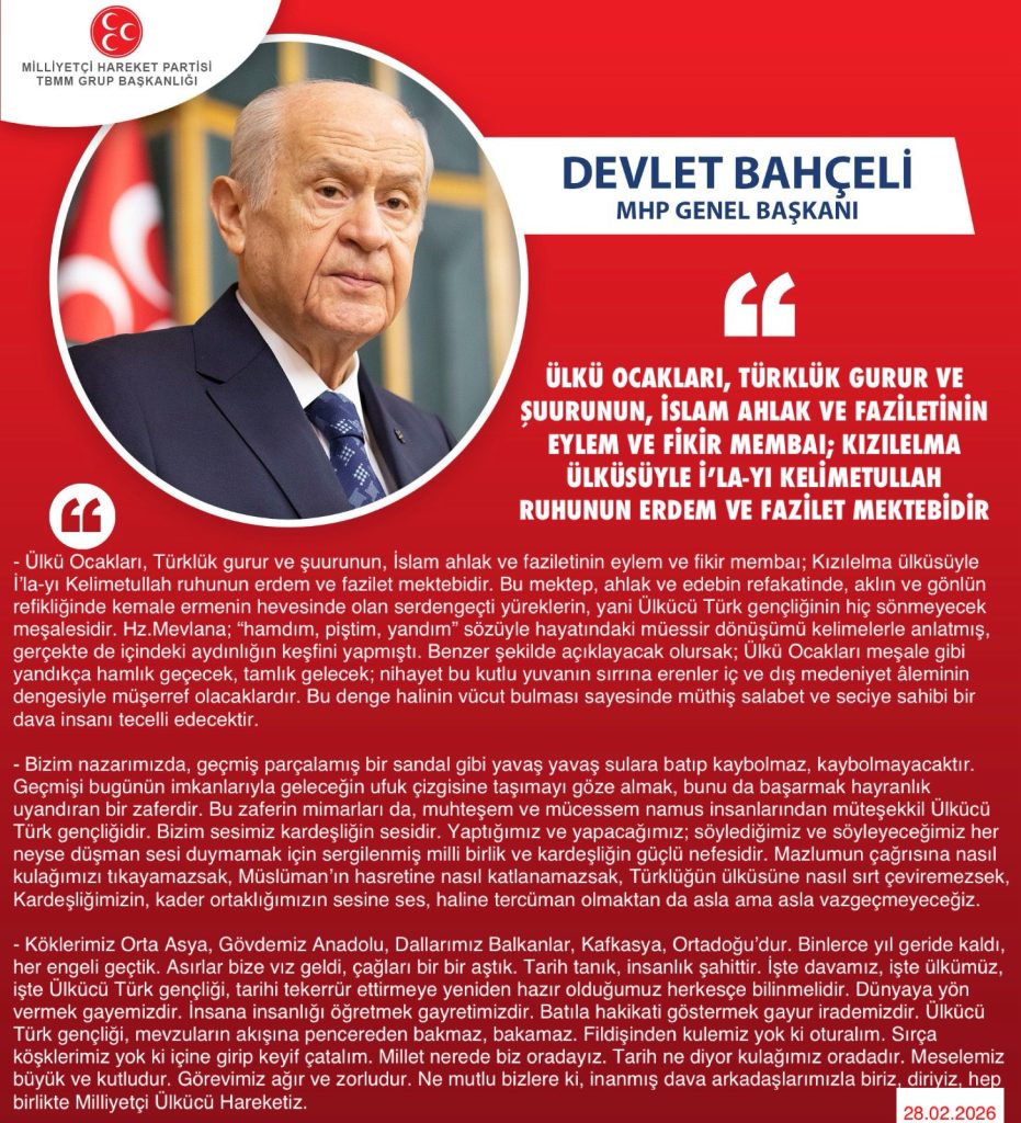 Genel Başkanımız Sayın Devlet BAHÇELİ’nin, Ülkü Ocakları Eğitim ve Kültür Vakfı tarafından düzenlenen iftar programında yapmış oldukları konuşma
