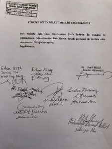 MHP Hukuk ve Seçim İşlerinden Sorumlu Genel Başkan Yardımcısı ve İstanbul Milletvekili Feti Yıldız, tarafından hazırlanan “Bazı Suçlarla İlgili Ceza Sürelerinden şartlı İndirim ile Tutuklu ve Hükümlülerin Salıverilmesine Dair kanun Teklifi” TBMM Başkanlığına verilmiştir.